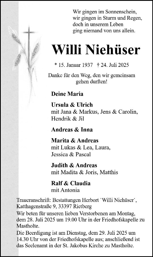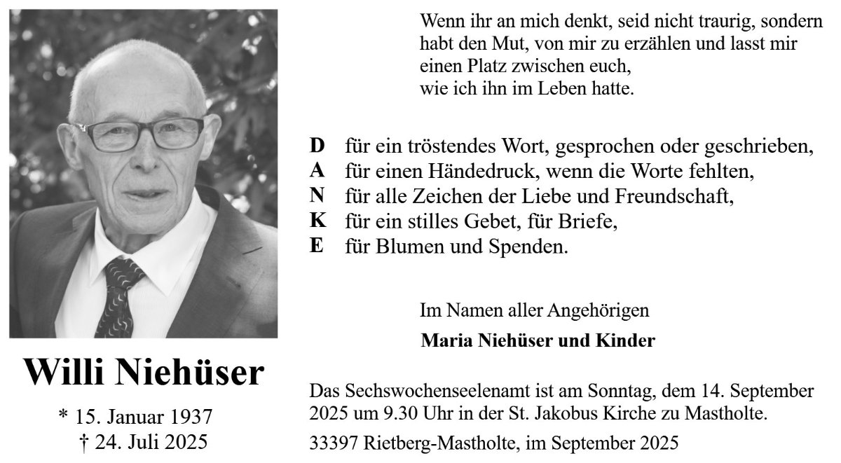 geboren am 15. Januar 1937 in Moese jetzt Rietberg